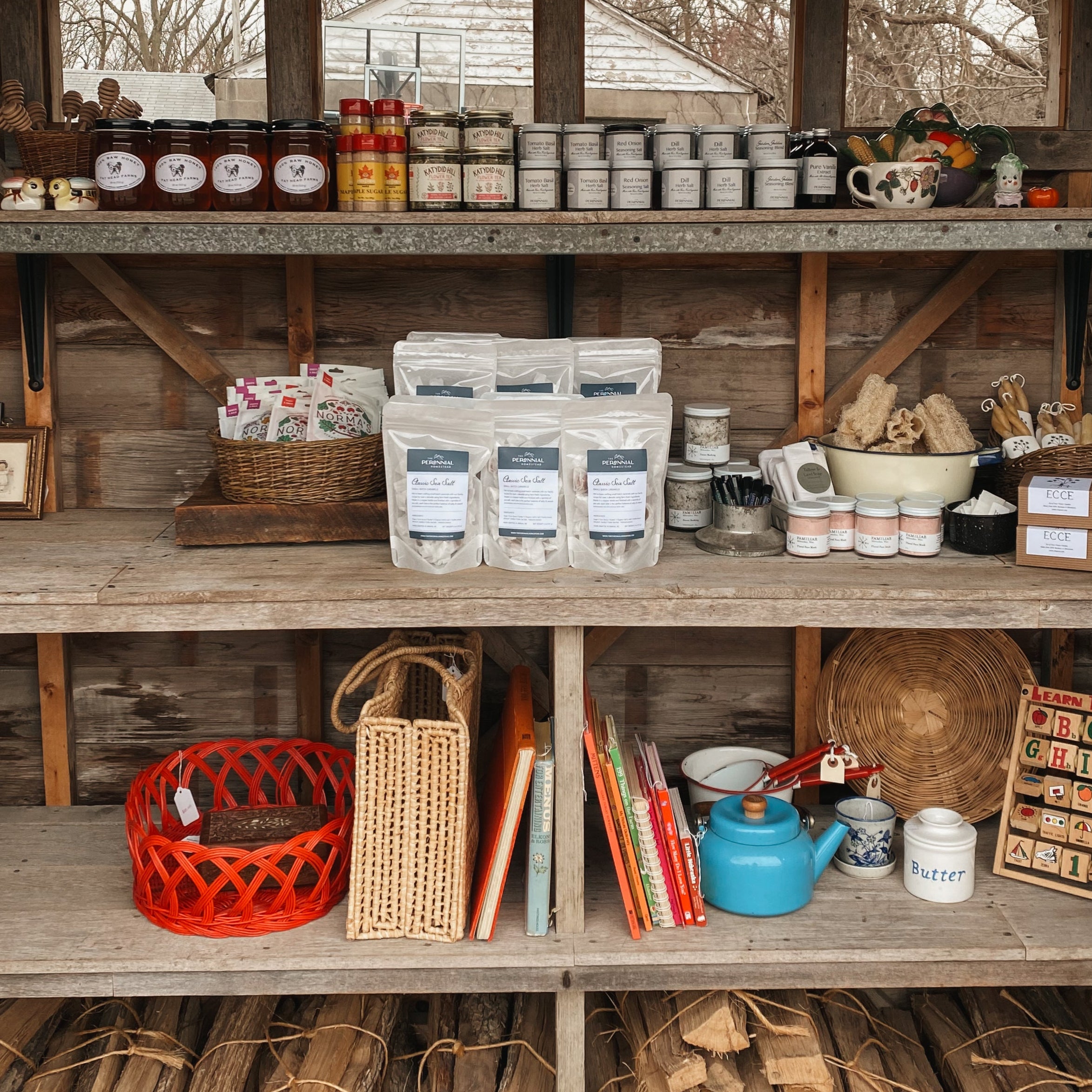 As soon as the weather warms in the spring through the winter holiday season, our farm stand is the hub of our homestead! Run on the honor system, we keep the shelves stocked with a seasonal selection of homegrown and farmer-sourced goods.